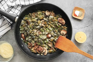 Add the oysters and mushrooms. Cook for 5 to 7 minutes, or until the mushrooms are tender. Strain the mixture, if necessary, and return to the skillet.