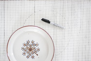 Draw your desired rug design onto the mesh rug canvas with a marker.